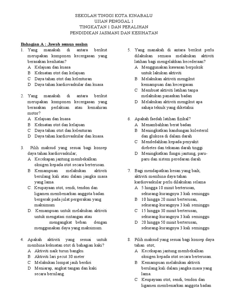 Ujian Penggal 1 Pjk Form1 Dan Peralihan 2011 Pdf